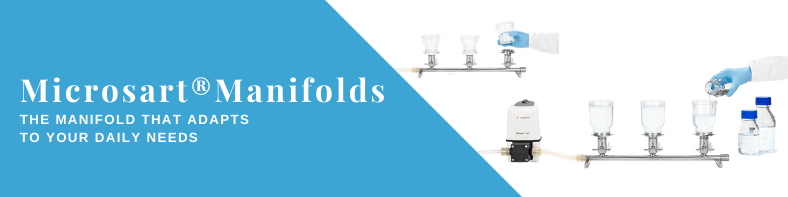 It is vital for any quality control laboratory to have the ability to accurately detect and quantify microorganisms in liquid samples. Membrane filtration is the established method of choice for liquid testing as it gives reliable and reproducible results. This makes suitable and thoughtful filtration equipment as essential as high-quality membrane filters and reliable media plates. Your daily microbiological testing procedures can be facilitated with the Microsart® Manifold. You can select the correct manifold that is ideal for your individual microbiological testing procedure, choose between reusable and single use funnels or filtration units, and decide between different sizes of manifolds and enjoy the manifold that is adapted specifically to your needs.