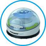 Scope of supply: Mini Centrifuge incl. 8 place tube rotor for 1.5/2.0 ml microcentrifuge tubes, incl. adapters for 0.5 ml and 0.4 ml tubes and PCR strip rotor for 4 strips with 8 x 0.2 ml tubes or 32 x 0.2 ml single tubes.