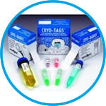 Temperature resistant from -196 °C to 150 °C. All labels withstand freezer temperatures down to -196 °C (liquid and vapour phase nitrogen), boiling water baths, autoclaving and moderate ovens (150 °C). Chemically inert labels resist most organic solvents and caustic agents. They adhere to most plastics, glass and metals without cracking, peeling or degrading. Made with a flexible, polyolefin label material and acrylic adhesive. This unique combination expands and contracts together with temperature fluctuations resulting in a strong adhesive bond. Convenient dispensing box assists in labeling individual tubes used in small experiments. Easy to write on. PVC labels accept writing from most lab markers including solvent resistant pens.