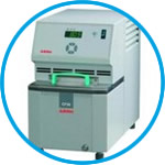 The new CF series offers compact refrigerated/heating circulators. With small overall dimensions the units can even be placed on a very small surface or within a complex installation. All models offer a heating capacity of 2kW and safety class 3 according to DIN12876-1. The maximum ambient temperature of 40 °C as well as ventilated air cooling allow the units to be positioned very closely together, with other units or directly under a fume hood. Furthermore all the models feature pump connections for external temperature applications and a bath opening for temperature control of small objects directly in the circulator bath. Wetted parts are made of high quality stainless steel or plastic. The instruments incorporate reliable Microprocessor electronics offering high temperature stability as well as warning and safety functions.