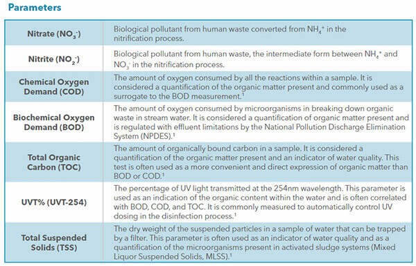 These parameters were impractical to be used until now, as they are known for requiring expensive or laborious lab procedures. However, the advent of online UV Vis sensors brought them to being used for process control and early warning detection applications, which would otherwise be unmanageable. Several possible applications for UV and UV Vis sensors are available, and in some cases, multiple parameters on a single sensor can be beneficial to the operator.