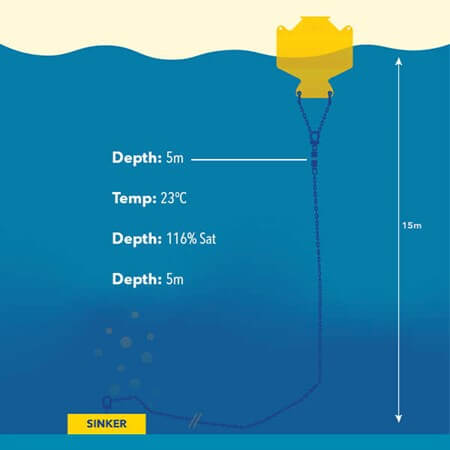 With these types of installations, it’s also vital to understand the overall depth of the water body. When deploying a buoy, different depths and velocities require different mooring options to keep them safely in place— and not all buoys can be moored the same way!